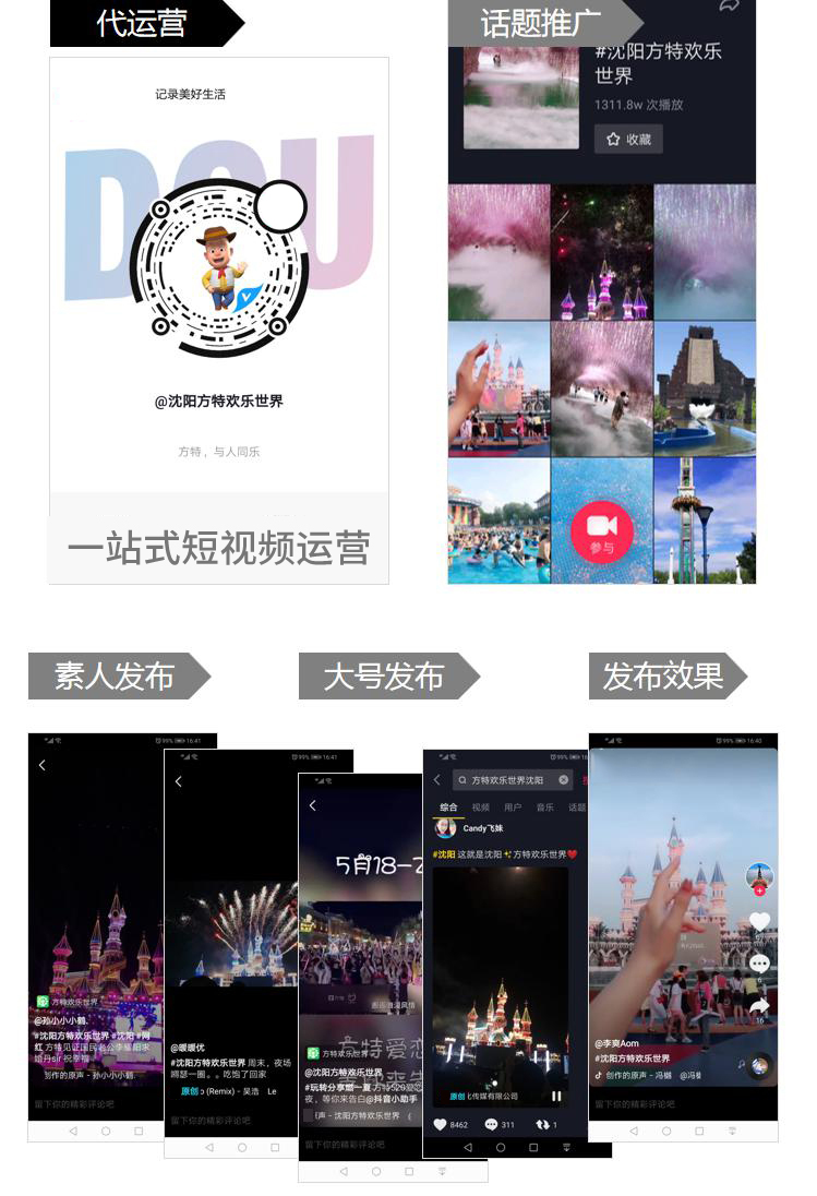 - ? 推廣效果 : 整體曝光量超過500萬,總互動量超過44.9萬,雙微平臺新增粉絲超過2萬名,有效提升目標(biāo)人群赴沈陽方特歡樂世界意愿并積累了目標(biāo)受眾。