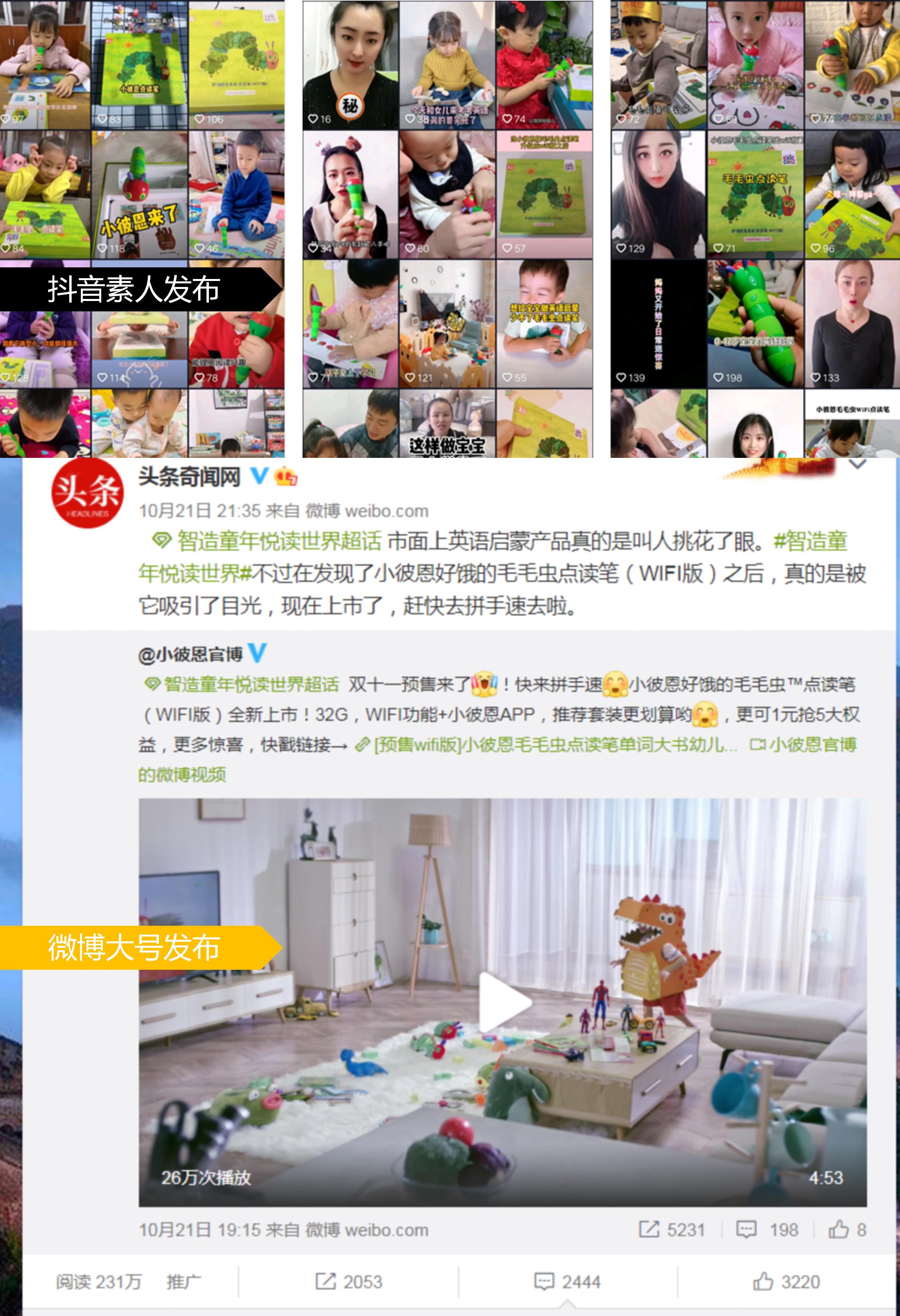 - ? 案例背景 : 小彼恩致力于成為智慧早教生態(tài)的領潮者,新品“小彼恩好餓的毛毛蟲WiFi版”預售上市,需要為新品宣傳,從而能獲得有效轉(zhuǎn)化。
