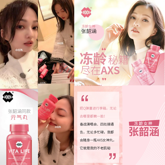 通過張韶涵在紅書發(fā)表產(chǎn)品體驗測評筆記,有效提高AXS發(fā)酵品牌的搜索量和購買量;圍繞#AXS女神丸#的話題營銷,借助明星的娛樂影響力和微博KOL的流量攻勢,達到品牌知名度、曝光度的雙重提升;同時以開包記玩法技巧,軟性植入產(chǎn)品,捆綁式添加“張韶涵同款”、“張韶涵推薦” 等標(biāo)簽,打通產(chǎn)品的流量入口。