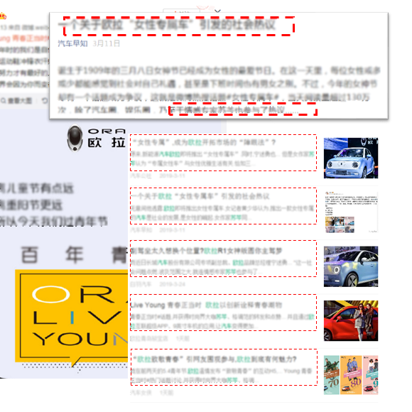 同時,品牌聯(lián)合微信大V實力背書,矩陣發(fā)文,為品牌發(fā)聲,,成功讓歐拉汽車新品全線曝光!