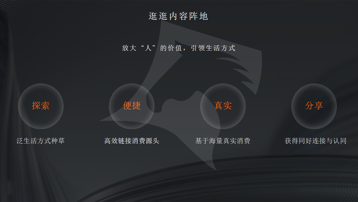 內(nèi)容泛娛樂化 品類廣泛垂直度高 商家/達(dá)人共創(chuàng) 通過大數(shù)據(jù)橫向的推薦邏輯,向你推薦你感興趣的內(nèi)容,通過內(nèi)容種草后向商品引流。 賦能商家/達(dá)人,構(gòu)建私域流量陣地+逛逛新平臺, 觸達(dá)更多的消費(fèi)場景,讓店鋪更“年輕”,品牌更“出圈”。