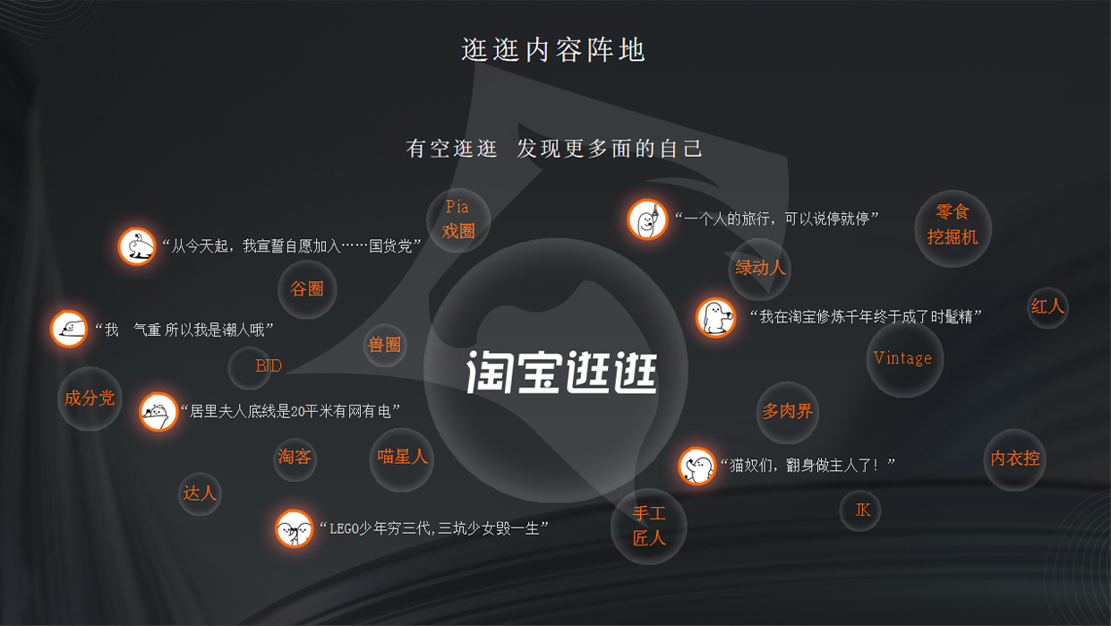 社交型購物是手淘的新趨勢,淘寶越來越重視微淘訂閱號、逛逛和猜你喜歡位置,致力于打造一個“逛”的平臺,在內(nèi)容營銷 3 . 0 時代,抓住閑逛的那群人才能抓住消費(fèi)動機(jī)。