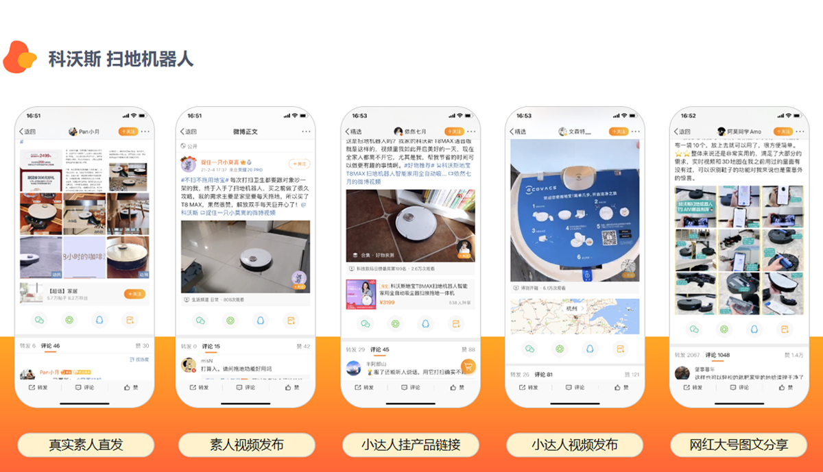 為企業(yè)提供眾多素人KOC資源,素人KOC原創(chuàng)產(chǎn)出圖文與拍攝產(chǎn)品相關(guān)的短視頻,然后上傳微博平臺,為產(chǎn)品進行推廣營銷,構(gòu)成矩陣傳播。