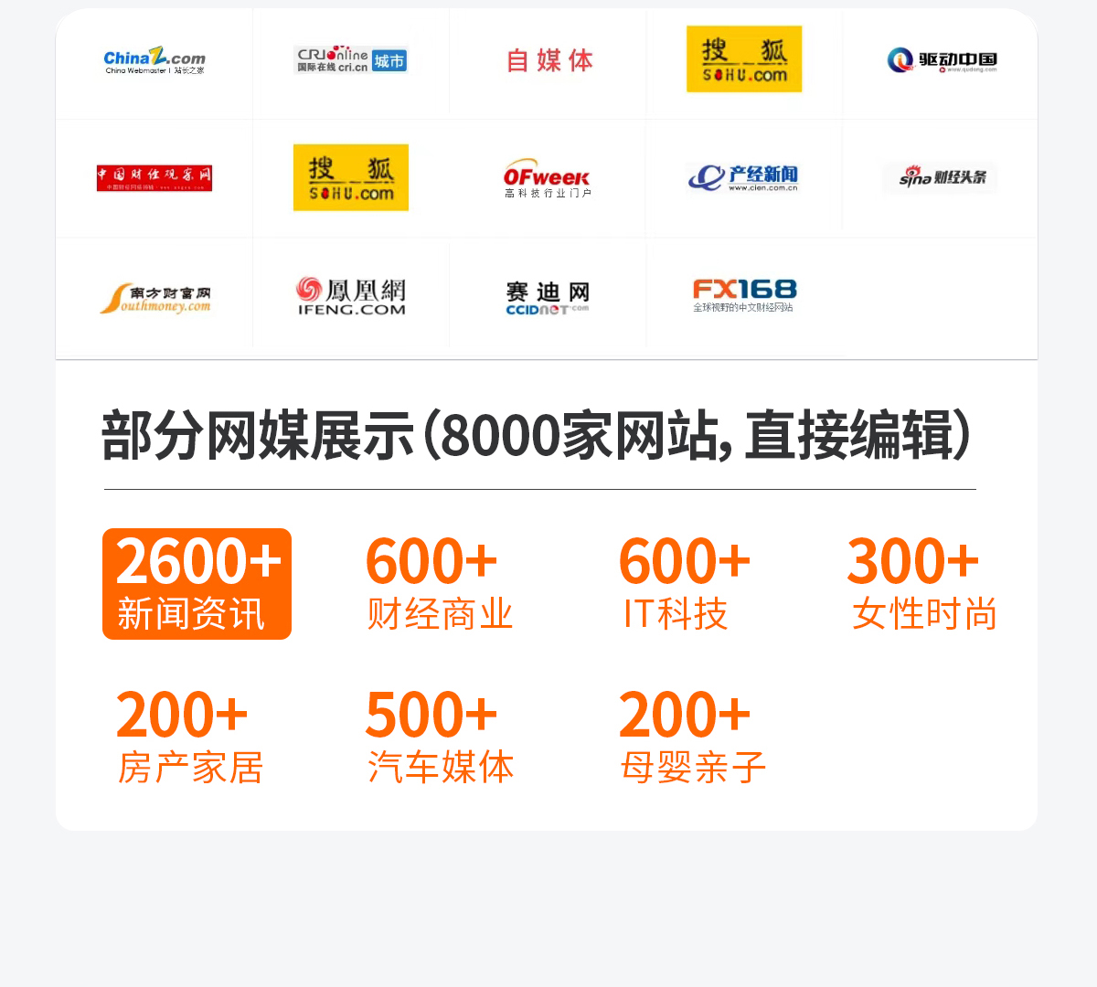 部分網(wǎng)媒展示(8000家網(wǎng)站,直接編輯)